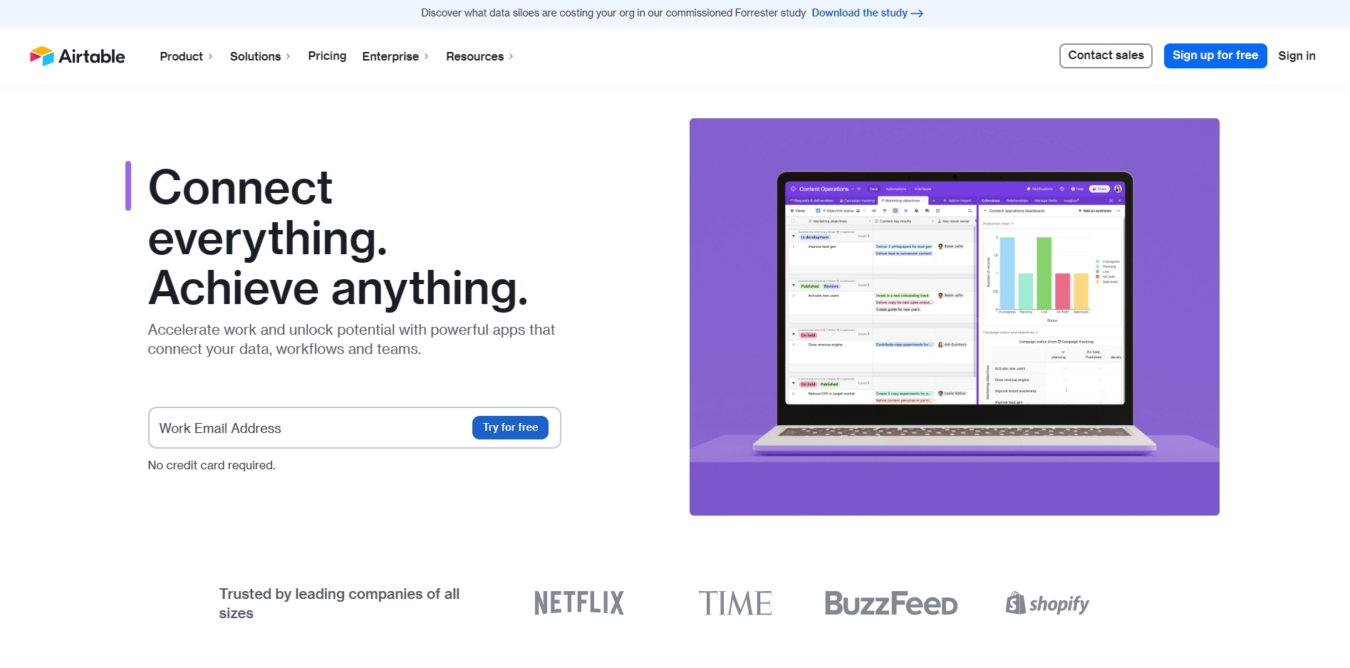 | What is it? | Airtable is a project management and collaboration platform designed to enable content pipelines, product management, events planning, user research, and more. It combines spreadsheet,database, calendar, and kanban functionality within one platform. |